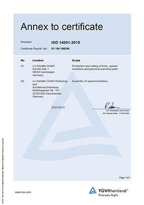 Environmental protection is a self-evident component of our corporate policy, therefore Schäfer GmbH in Gerstungen has an environmental management system certified to the standard ISO 14001:2015.