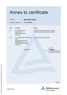 Schäfer GmbH in Gerstungen is certified according to the standard ISO 9001:2015 as proof of its efficiency and competence as well as for continuous improvement.